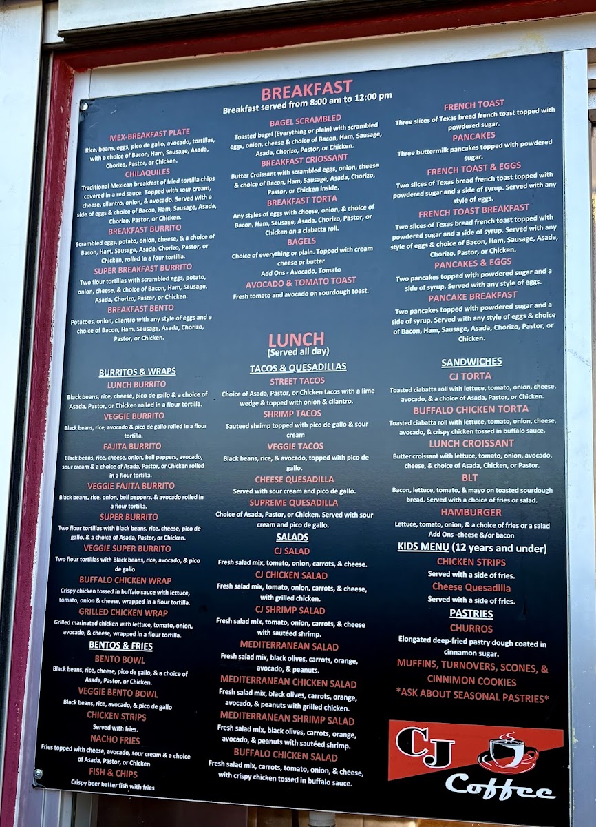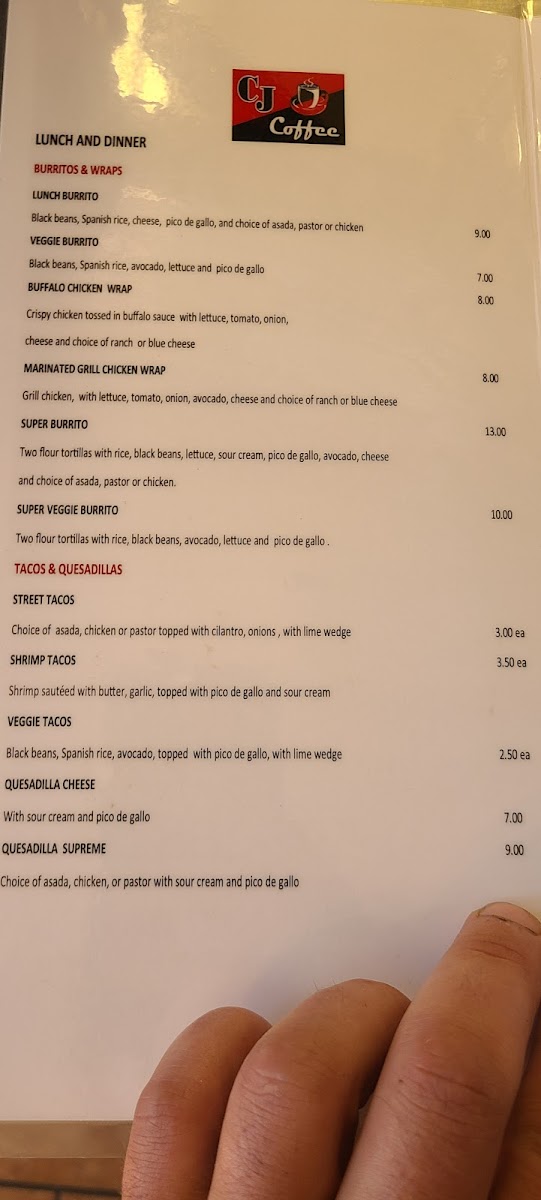 CJ Coffee and Grill Menu